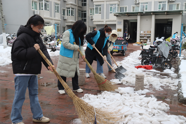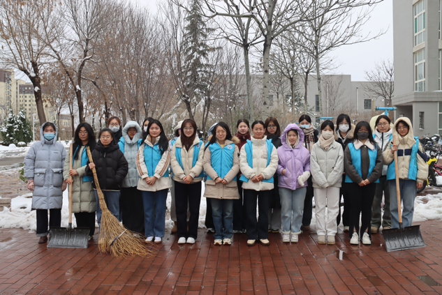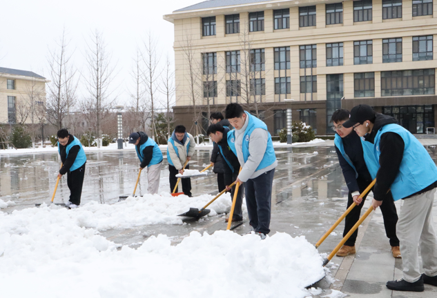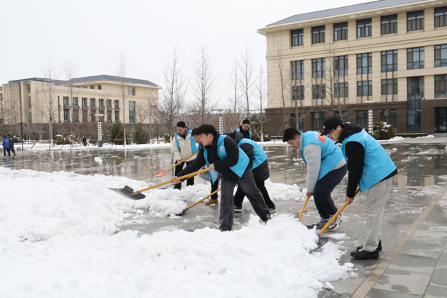 组织学生干部、学生党员对圣井校区和燕山校区相关区域的积雪进行了清扫。